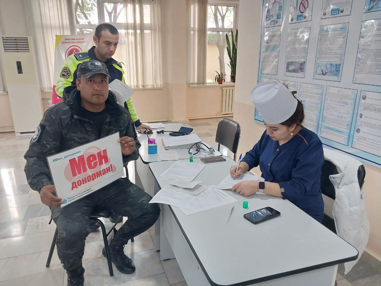 Фарғона вилояти Ички ишлар бошқармаси ходимлари инсонпарварлик ва эзгулик фазилатларини тарғиб этиш мақсадида “Биз донормиз!” шиори остида ўтказилган беғараз қон топшириш акциясида фаол иштирок этдилар.